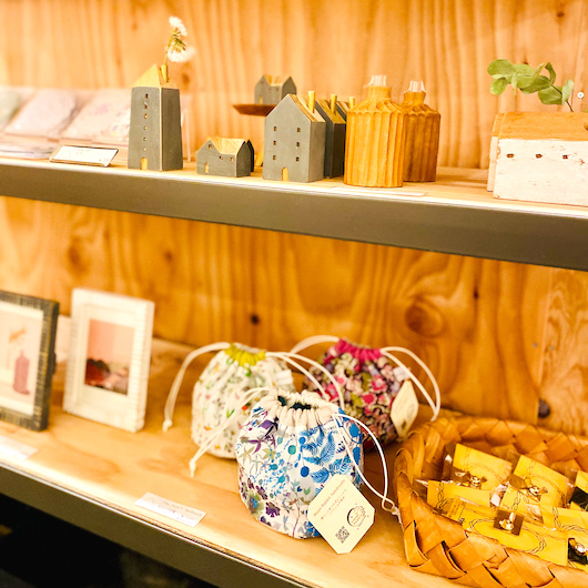 さんかくさんの素敵な店内に、まるっころ巾着も並べていただけてとっても嬉しいです☆