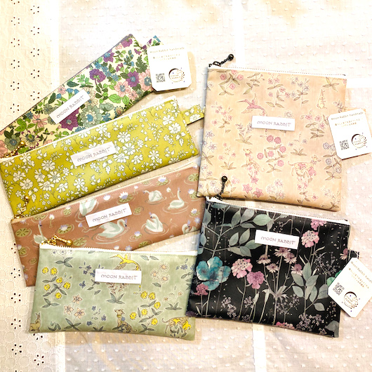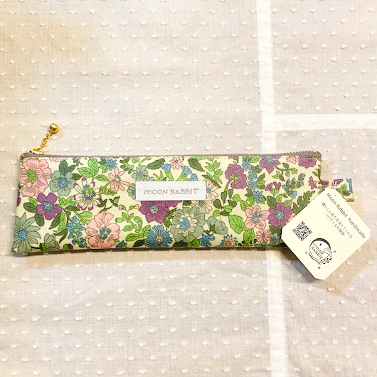 ミルフルール(グリーン系)も今のところ最後の一点です。こちらの生地は再販の可能性があるので、また入手できたらこの柄でいろいろ制作できたらいいなと思っています。お気に入りの柄なので今までもいろいろなアイテムを作ってきました。