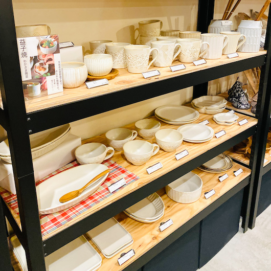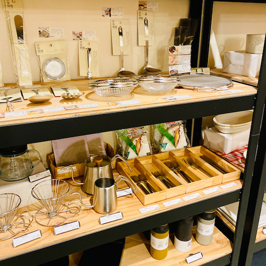オシャレな雑貨がたくさん並んでいてワクワクする空間です♪キッチン雑貨や陶器、生活&ファッション雑貨にベビーグッズ、そしてCAFE FLAっとさん&Bakeshop PoTaさんと姉妹店なので美味しい焼き菓子もあります🎶