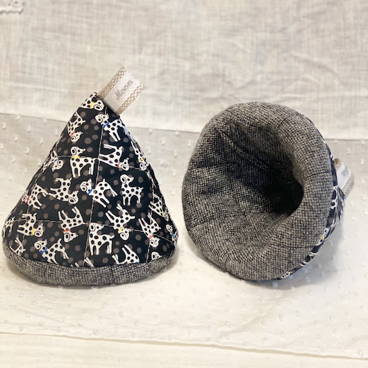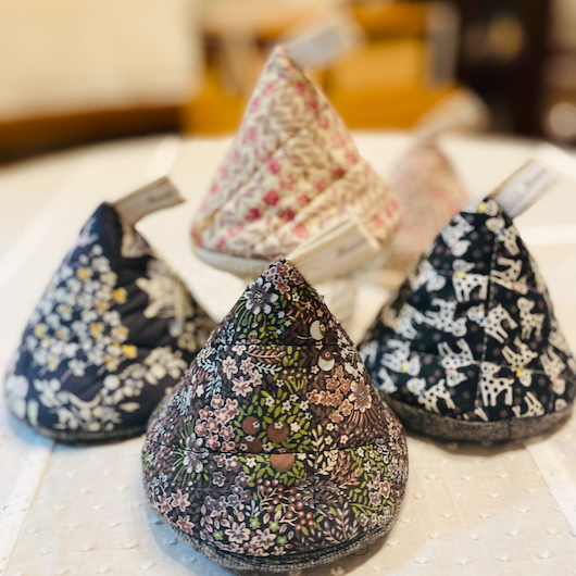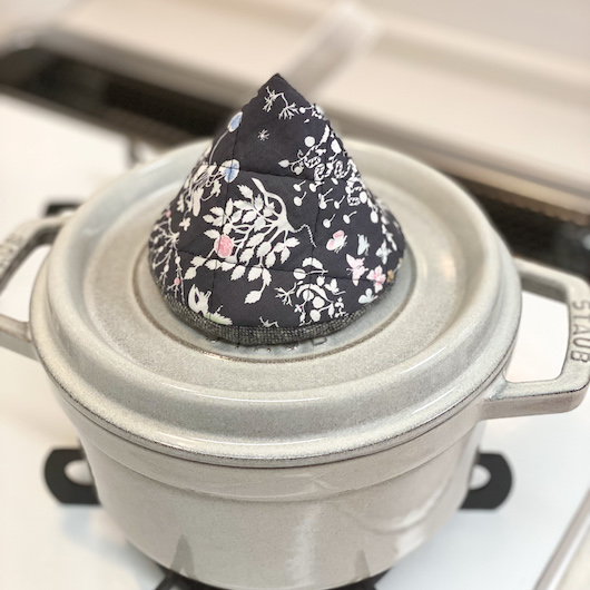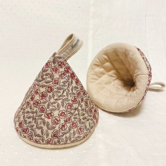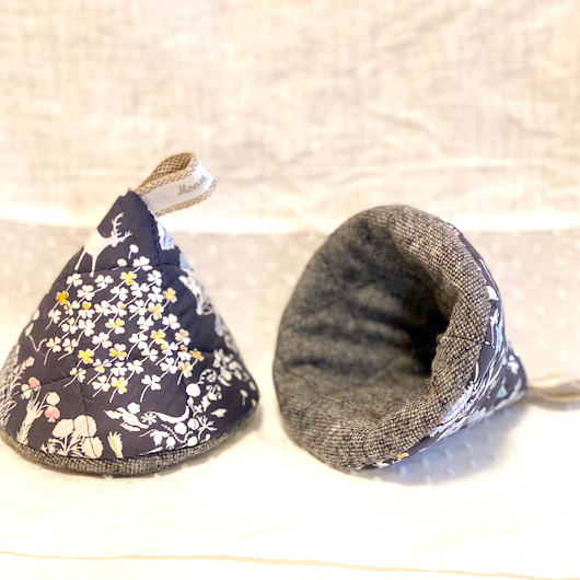 私自身も愛用している三角鍋つかみ。ころんとした円錐形が可愛らしい鍋つかみです。